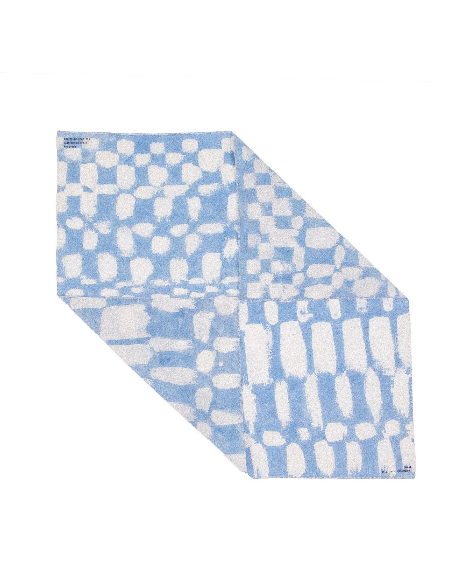 Motif réalisé au pinceau avec de la cire et teinture à l'indigo naturel à l'atelier/galerie Greenhouse à Saint-Etienne.