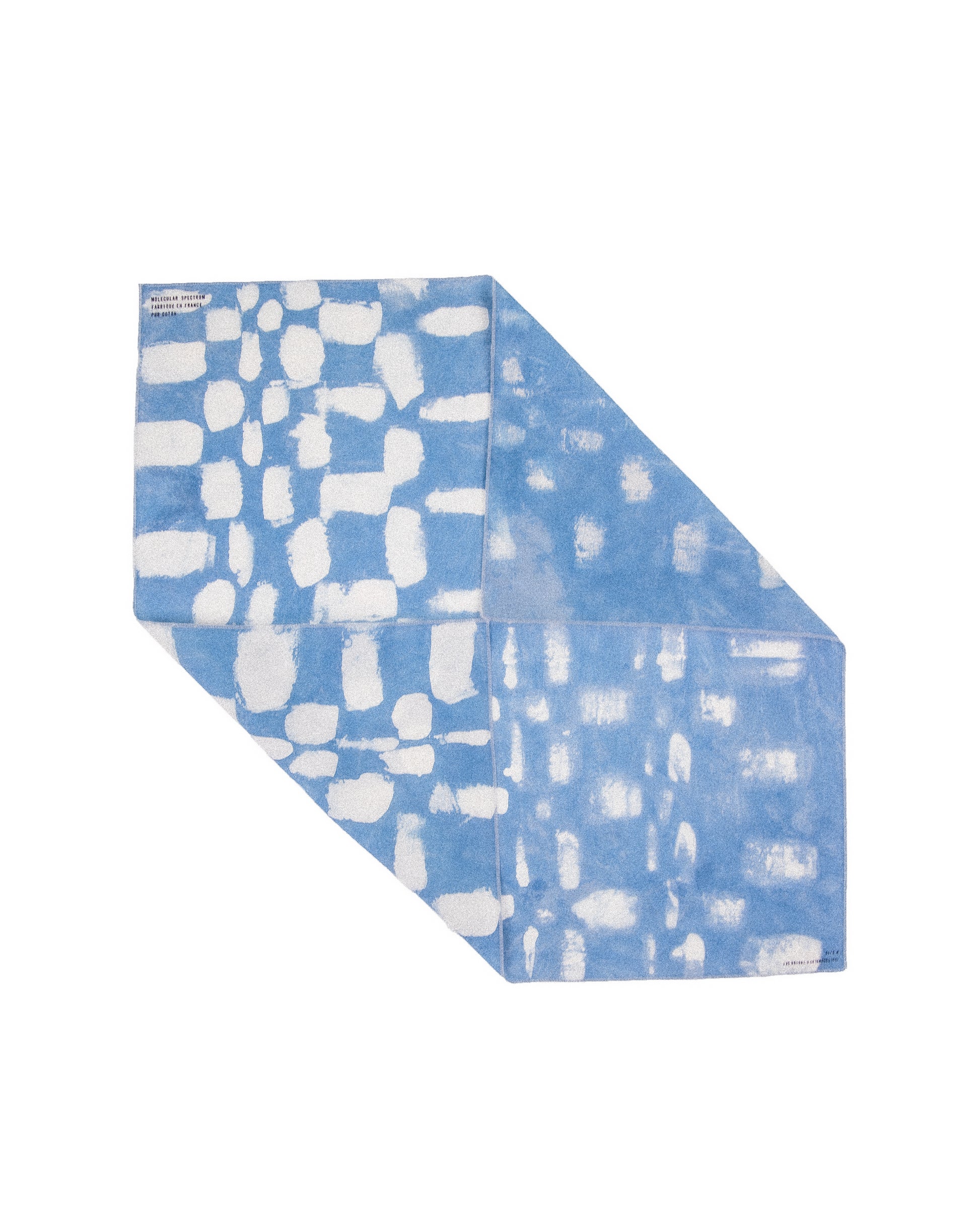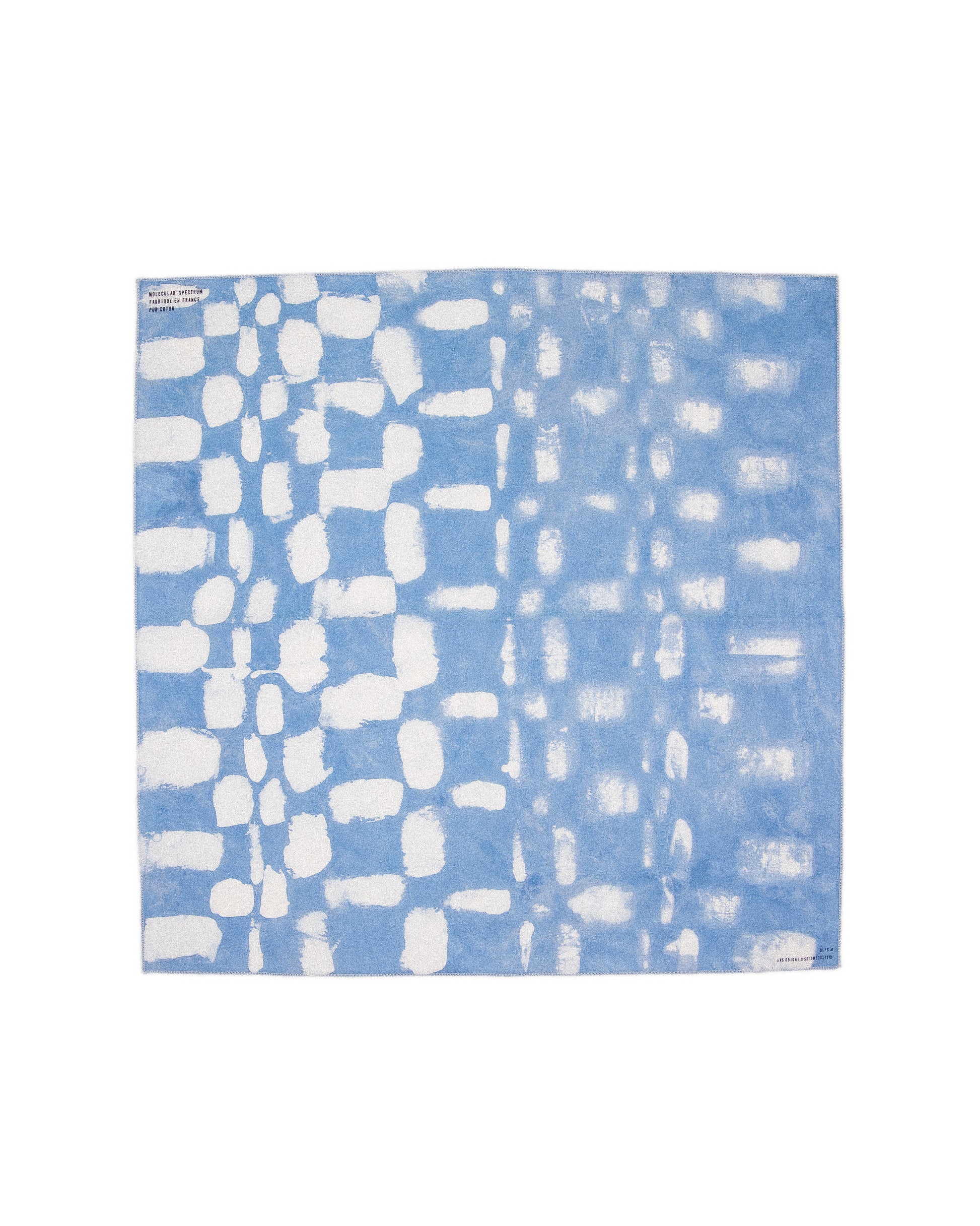 Motif réalisé au pinceau avec de la cire et teinture à l'indigo naturel à l'atelier/galerie Greenhouse à Saint-Etienne.