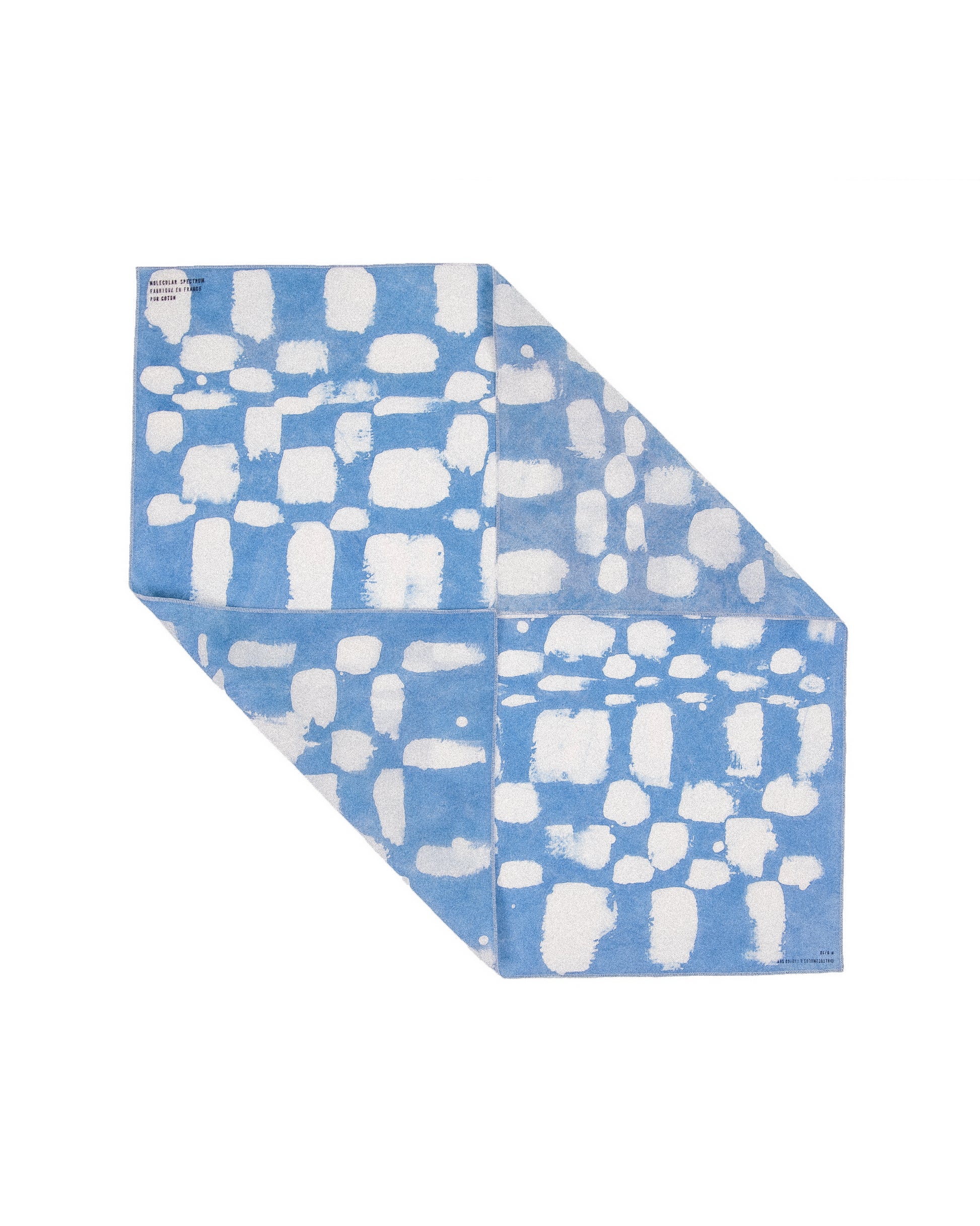 Motif réalisé au pinceau avec de la cire et teinture à l'indigo naturel à l'atelier/galerie Greenhouse à Saint-Etienne.