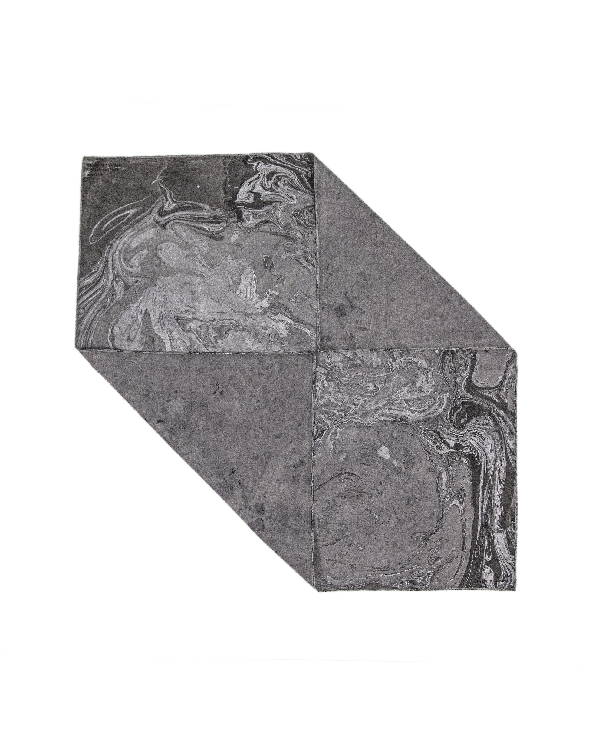 Marbrage artisanal et teinture végétale avec de la noix de galle et du fer à l'atelier/galerie Greenhouse à Saint-Etienne. L'envers est tacheté, c'est les traces du fer sur la toile.