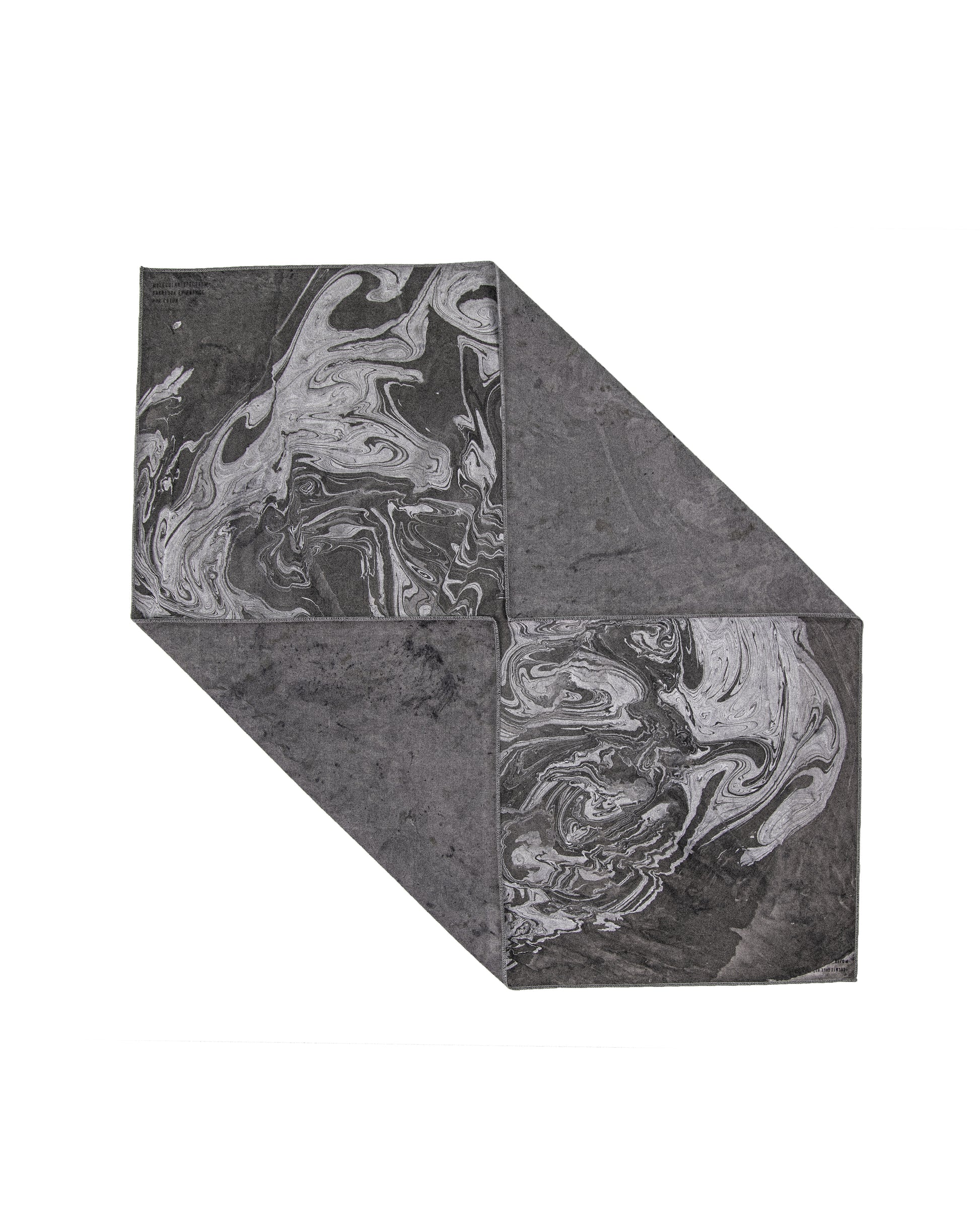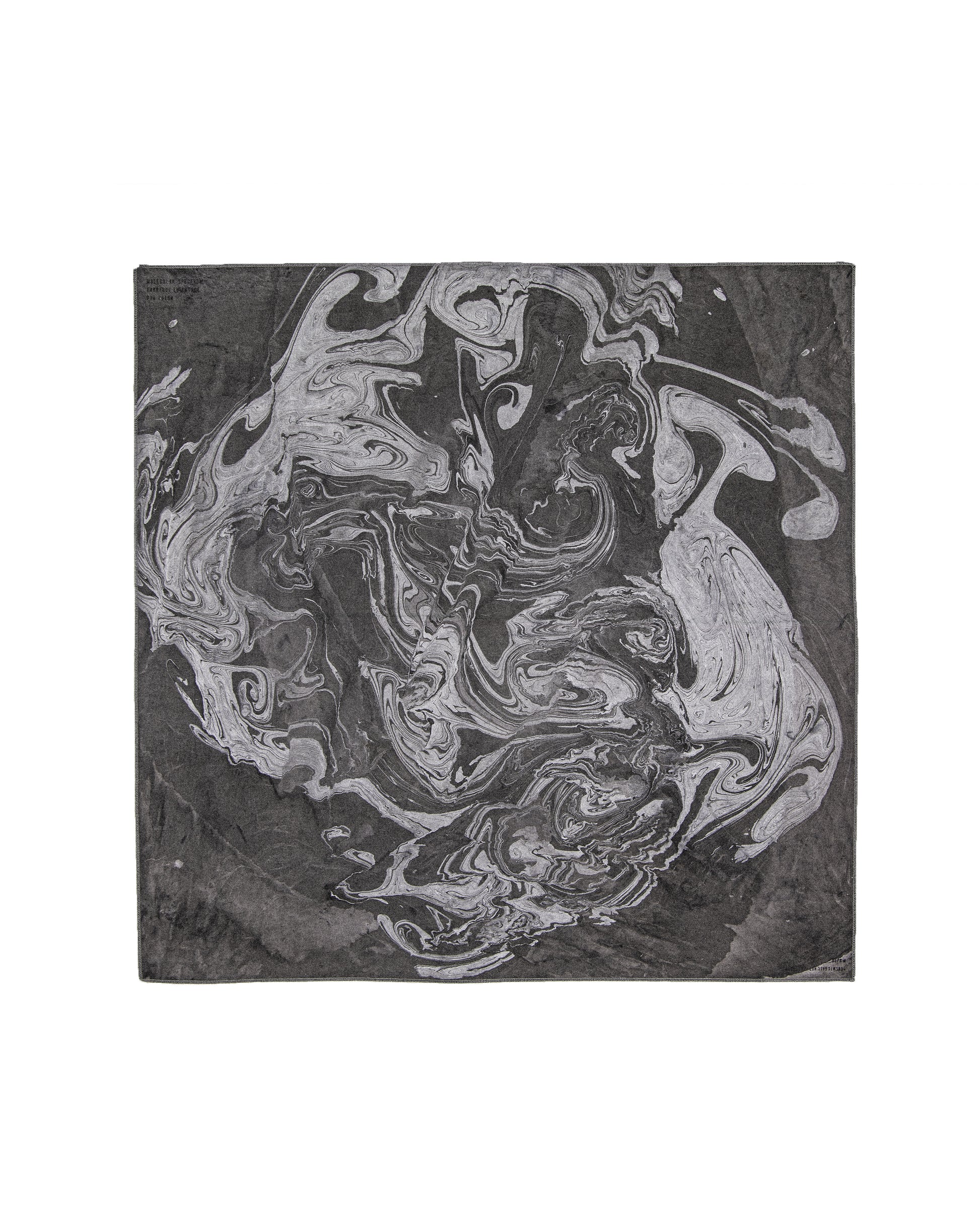 Marbrage artisanal et teinture végétale avec de la noix de galle et du fer à l'atelier/galerie Greenhouse à Saint-Etienne. L'envers est tacheté, c'est les traces du fer sur la toile.
