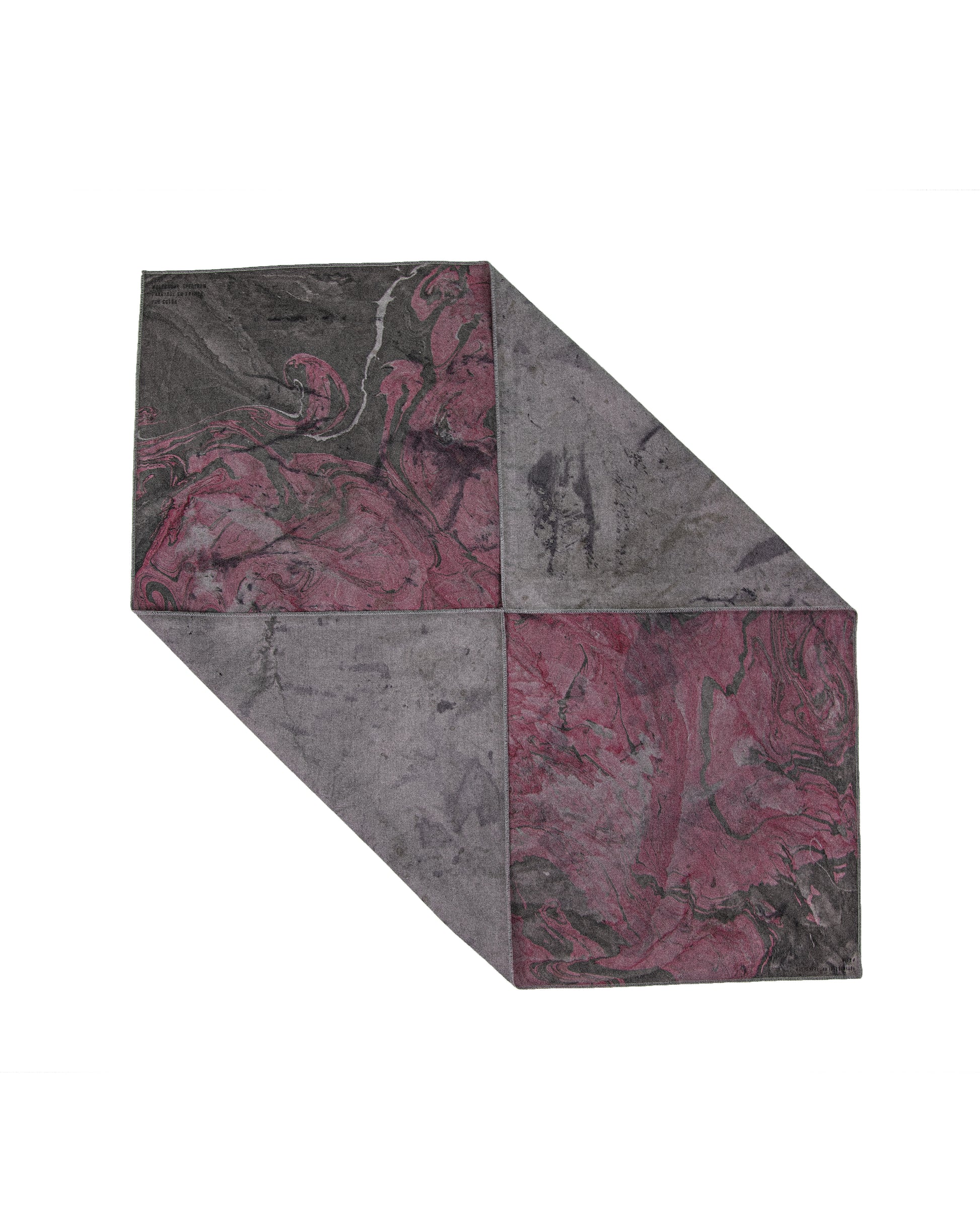 Marbrage artisanal et teinture végétale avec de la noix de galle et du fer à l'atelier/galerie Greenhouse à Saint-Etienne. L'envers est tacheté, c'est les traces du fer sur la toile.