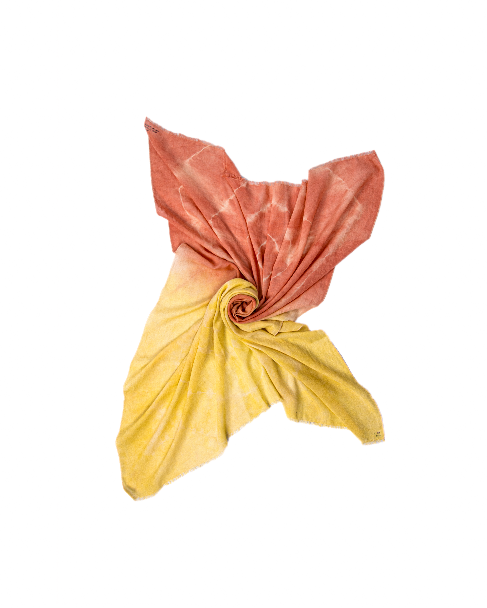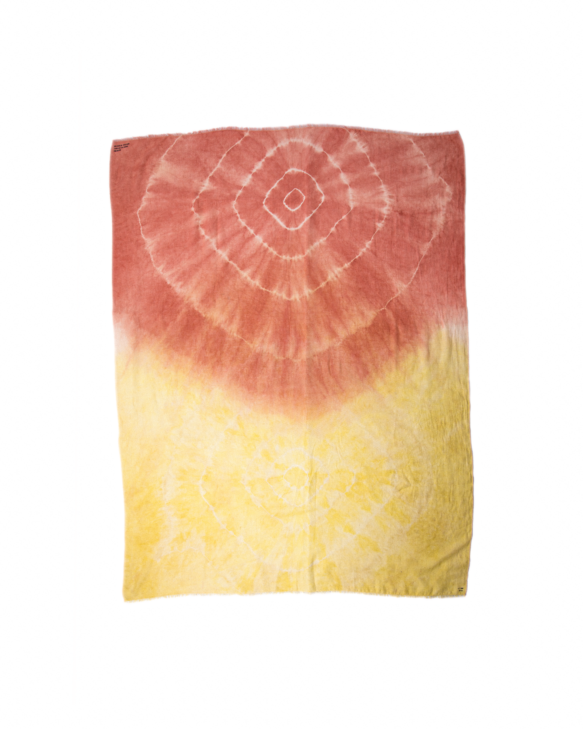 Shibori et TieDye avec de la garance pour le rouge et de la réséda pour le jaune.