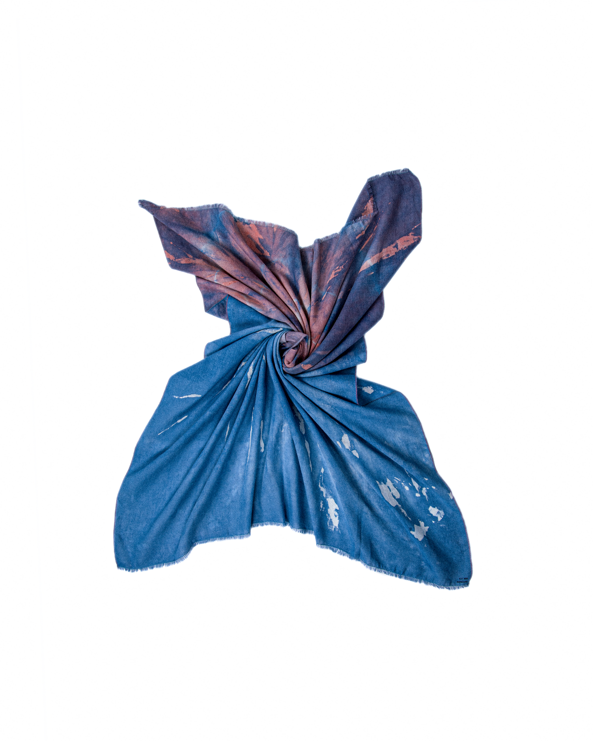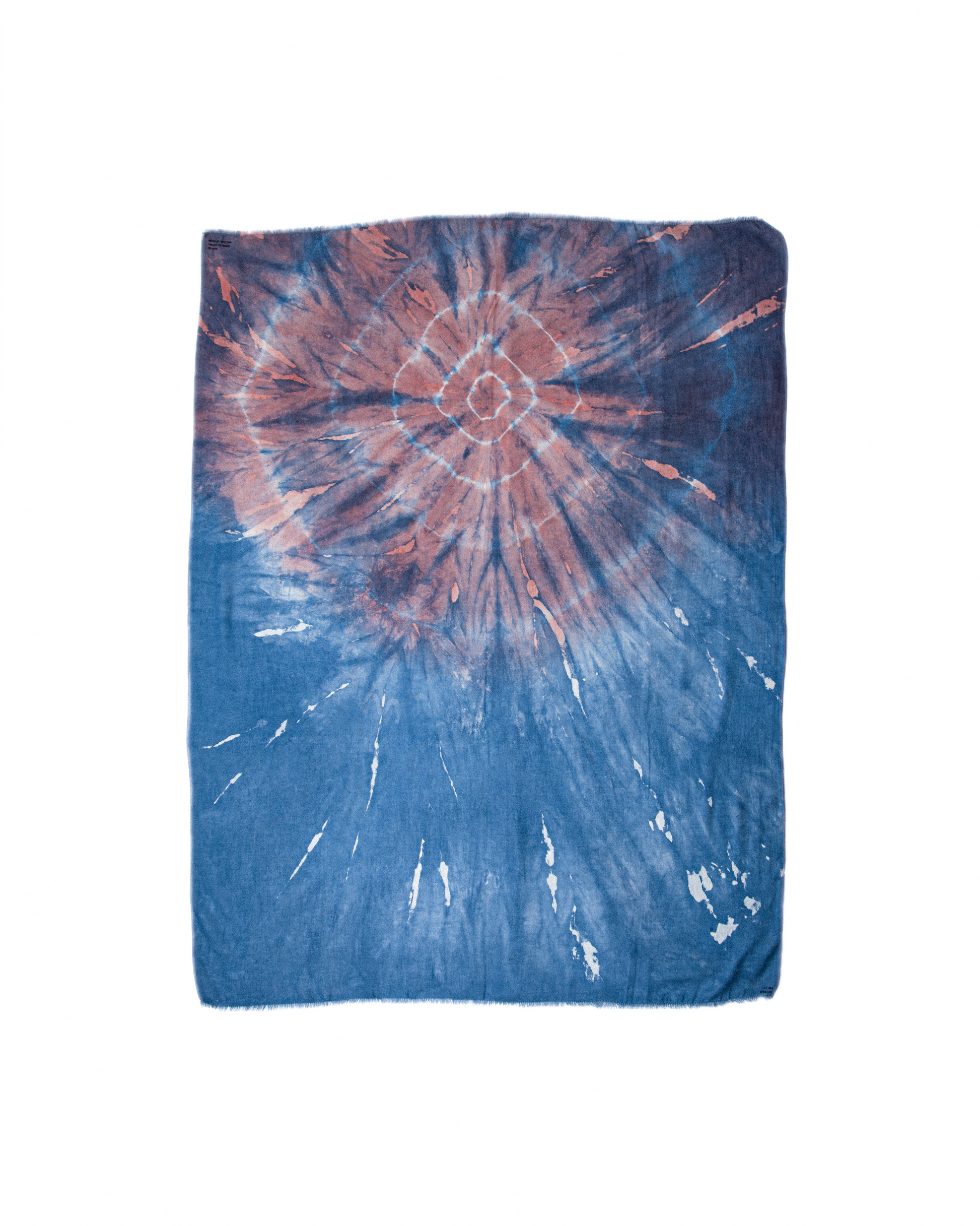 Shibori, Tie&Dye et Batik avec de la garance pour le rouge et de l’indigo pour le bleu.