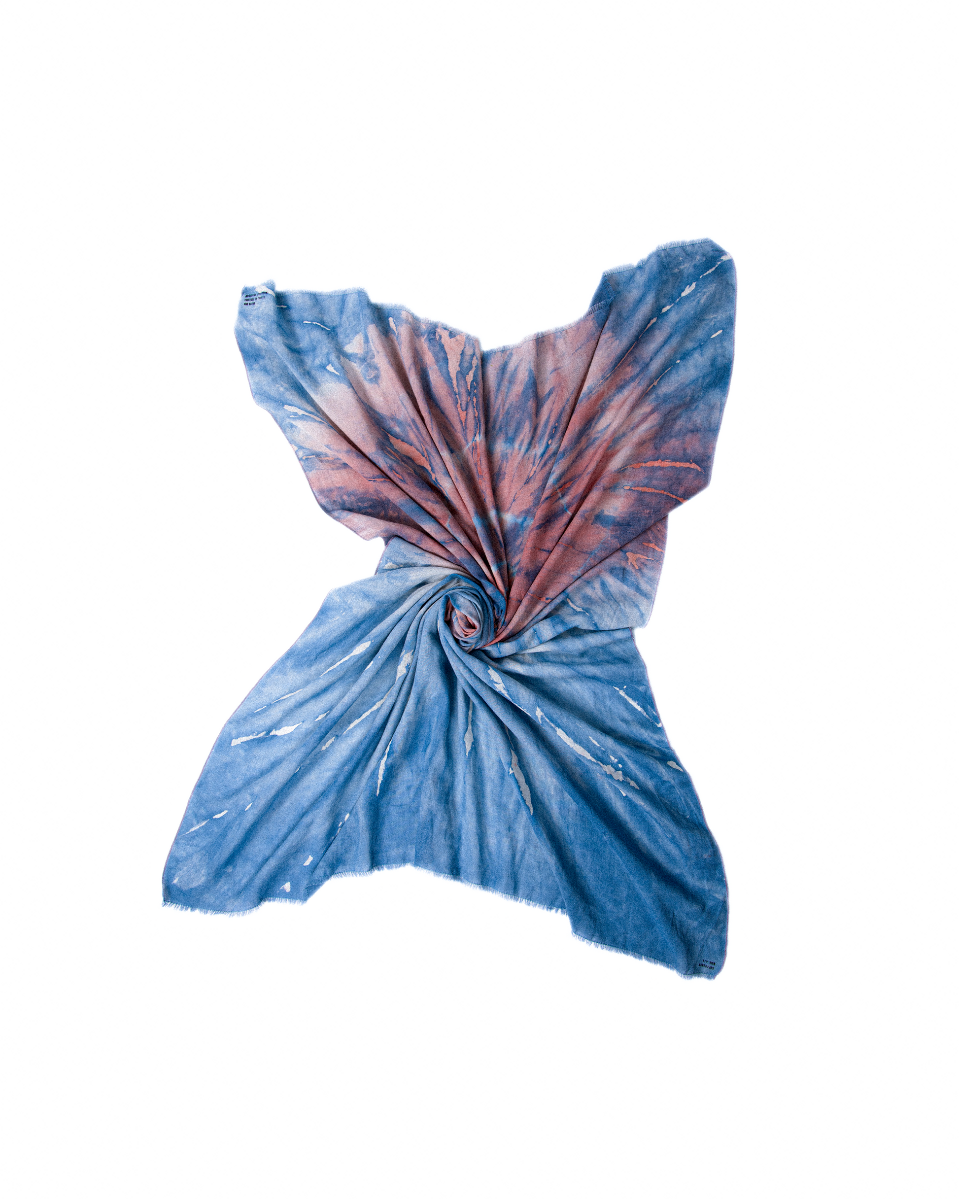 Shibori, Tie&Dye et Batik avec de la garance pour le rouge et de l’indigo pour le bleu.